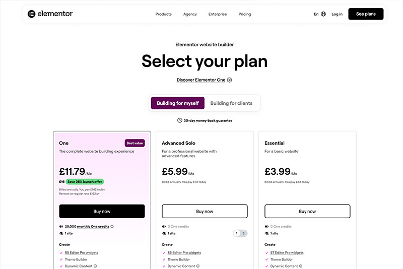 Elementor currently offers three primary ways to buy: the Pro Plugin (if you have your own host), Elementor One (the all-in-one AI suite), and Managed Hosting.